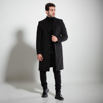 Classic Coat With Slanted Pockets Wool Coat-Black