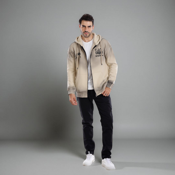 Basic Inner Fleece Zip Through Hoodie-Caffe