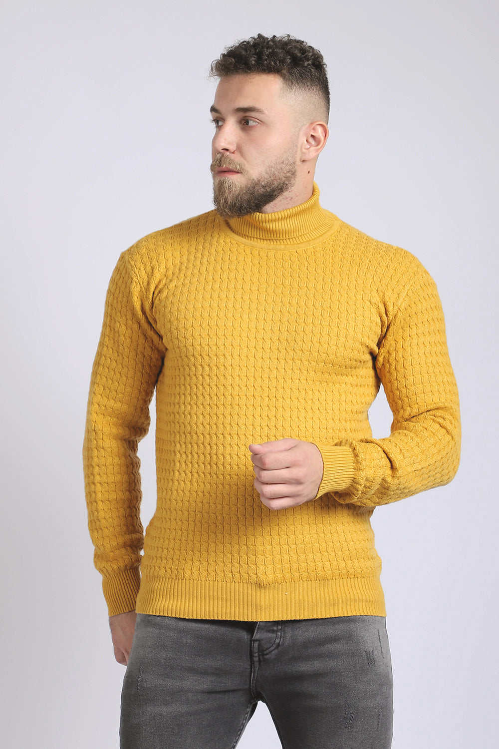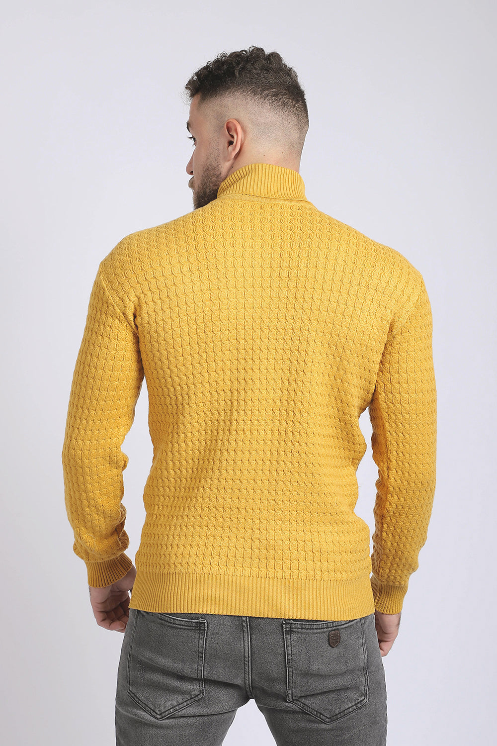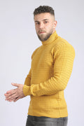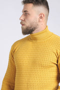 بلوفر أكريليك مضلع برقبة عالية - لون خردل