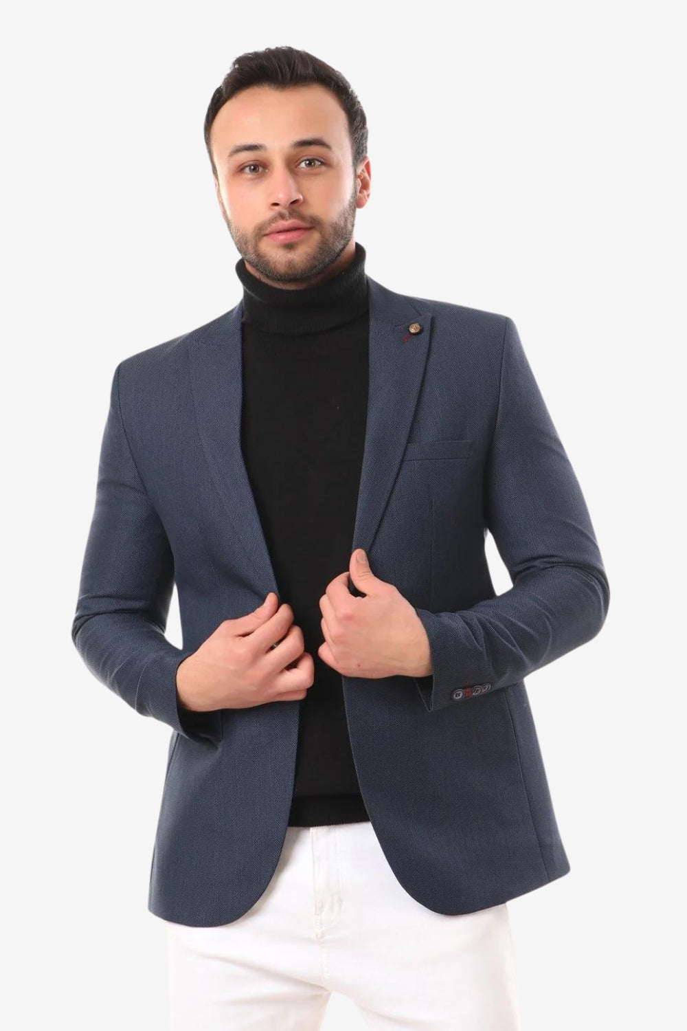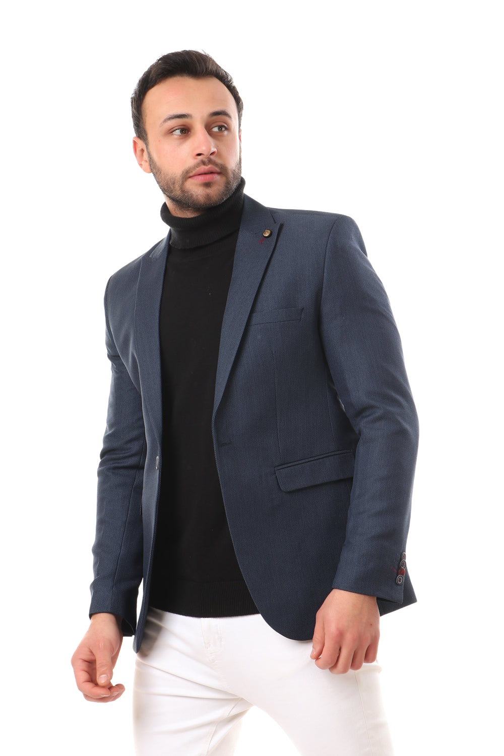 بليزر بقصّة عادية ونمط سلوب - أزرق داكن