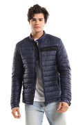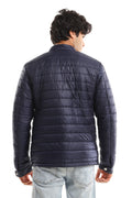 سترة مقاومة للماء برقبة مبطنة وشريطية - رمادي غامق