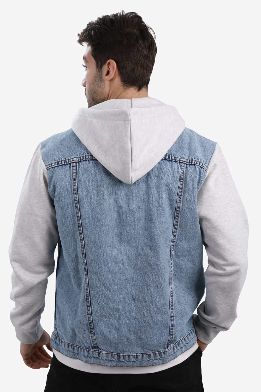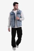 جاكيت جينز بأكمام طويلة وياقة مطوية --- رمادي فاتح وأزرق فاتح