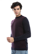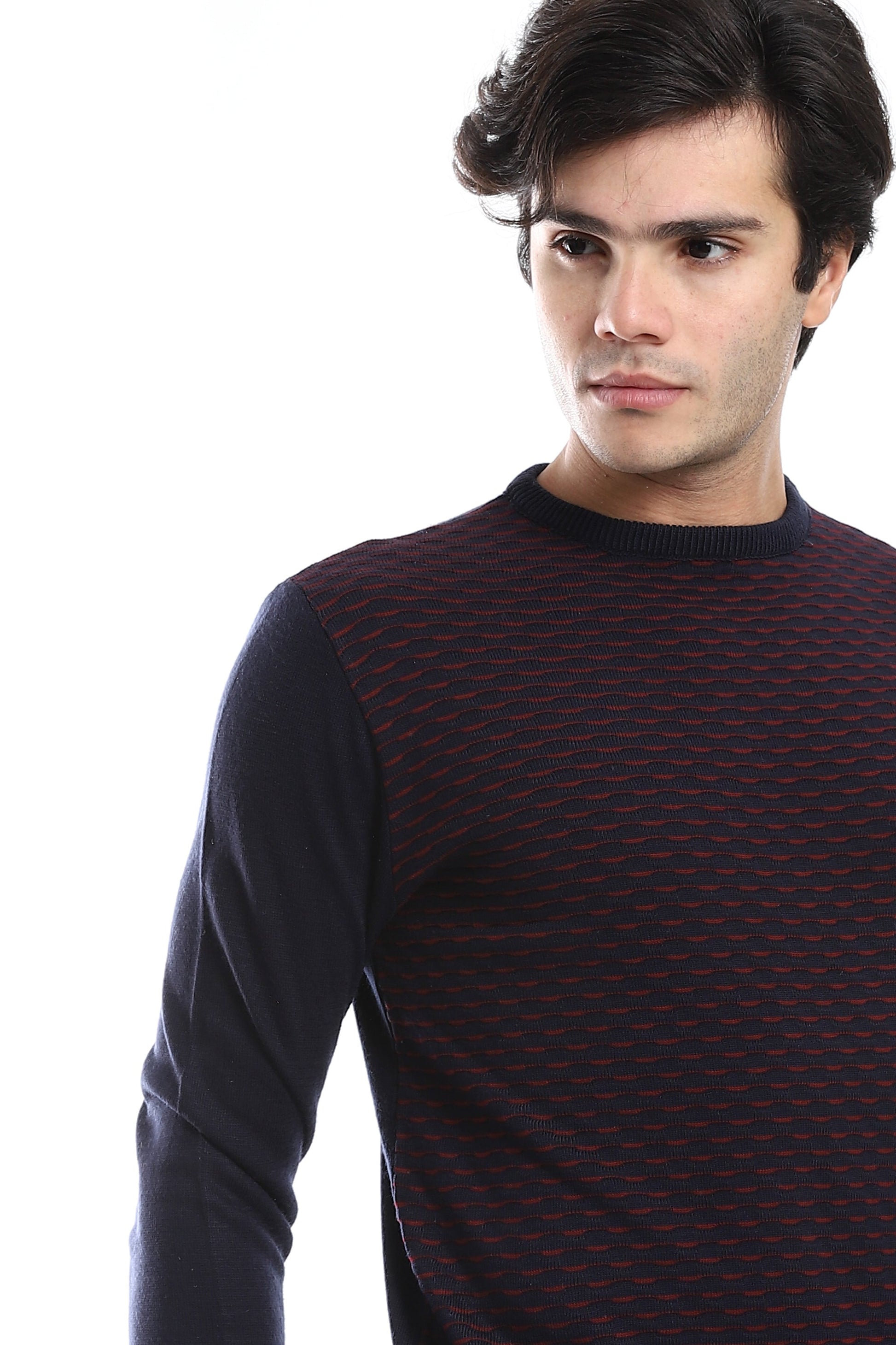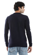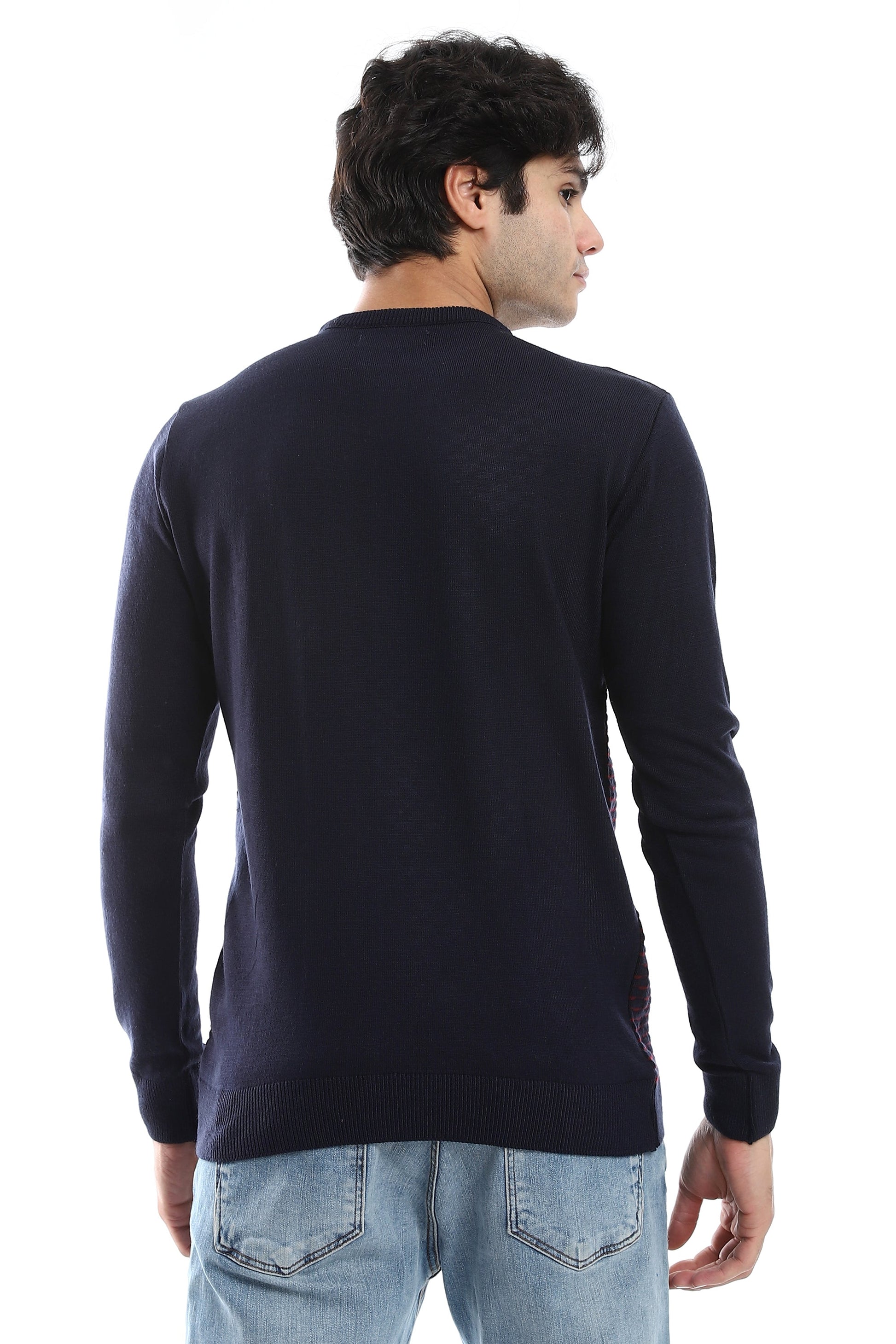 بلوفر محبوك بحاشية مضلعة - كحلي