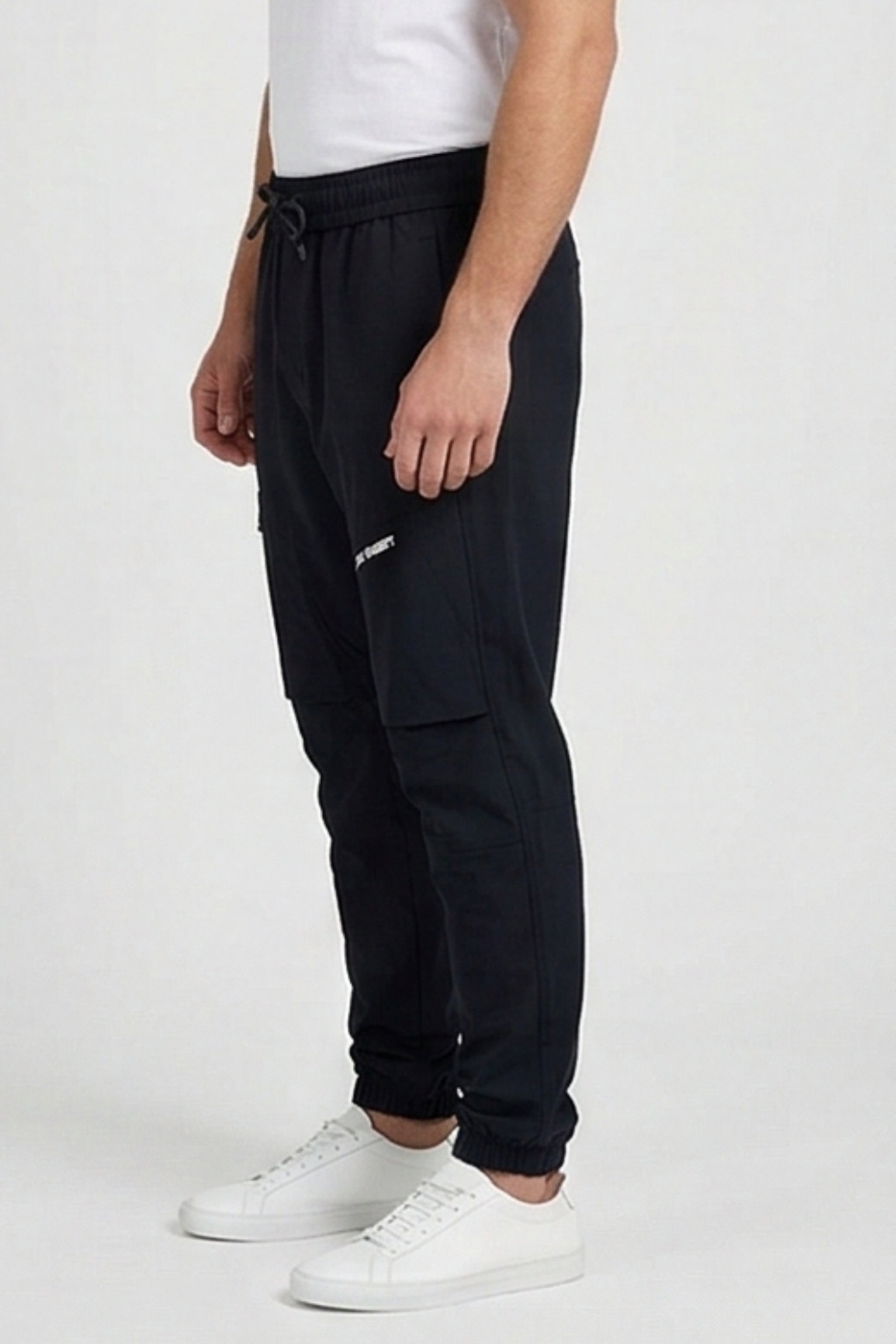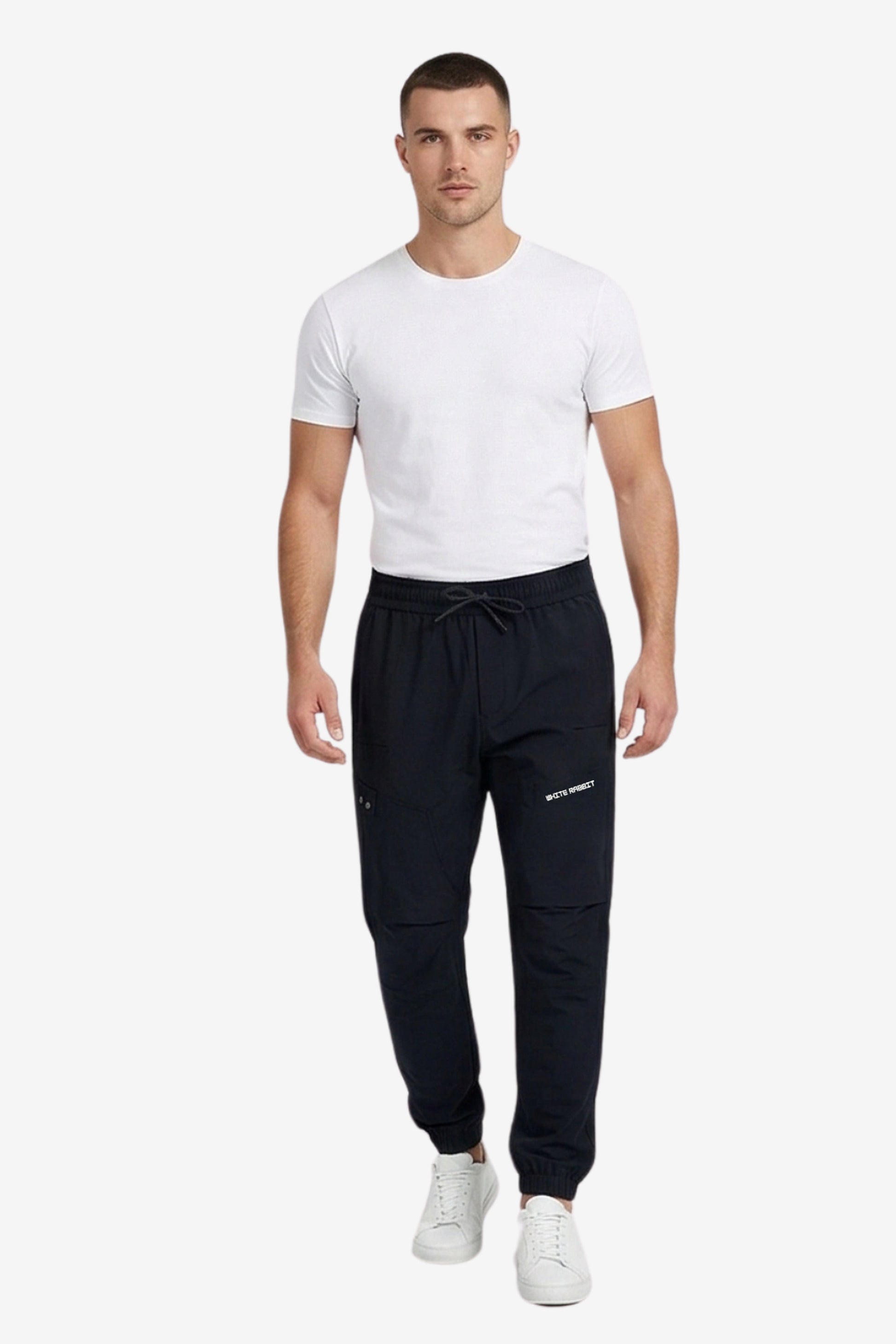 Men’s Casual Wide Leg Jogger Pants – Adjustable Drawstring - Black Slip On Plain Practical Joggers
