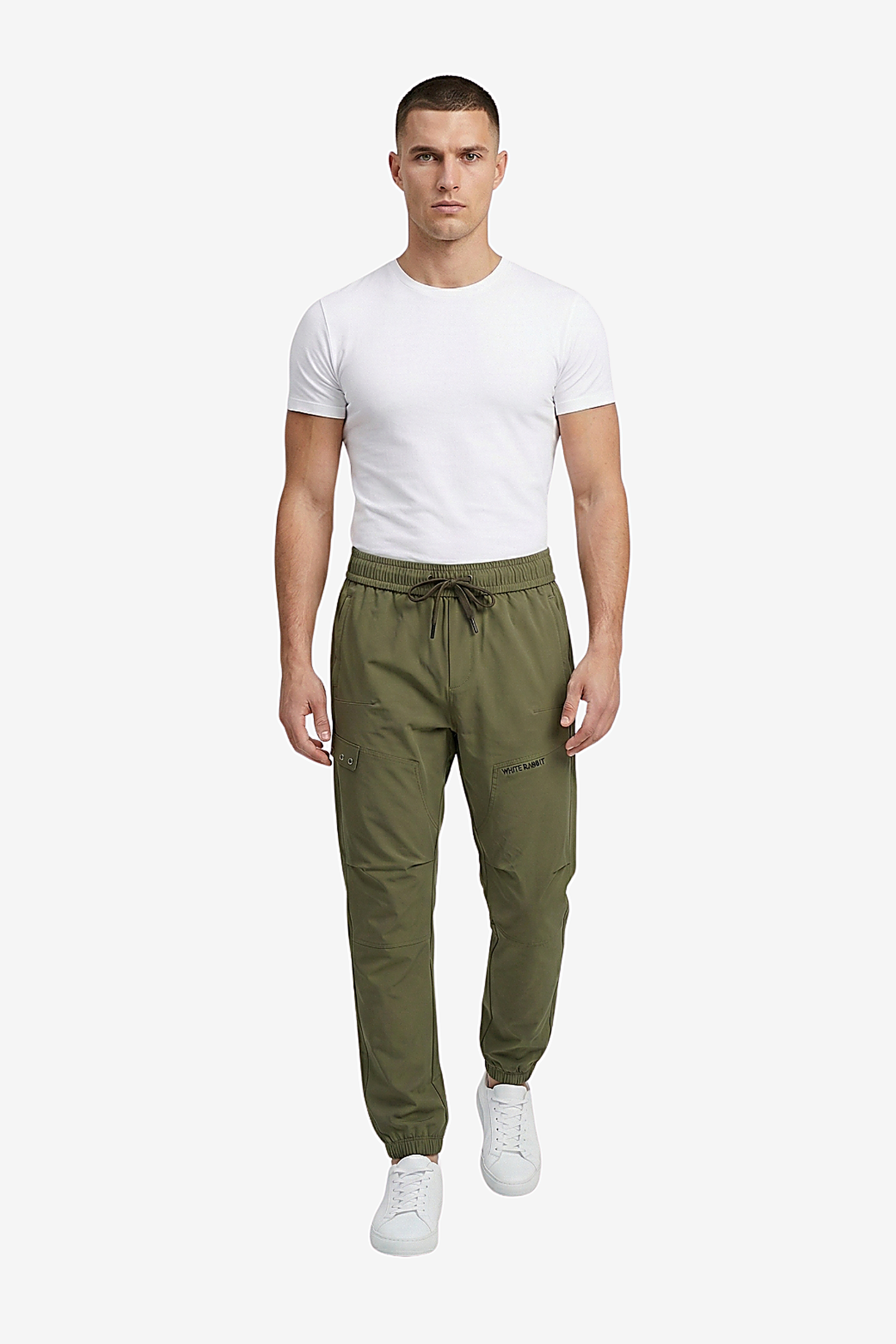 Men’s Casual Wide Leg Jogger Pants – Adjustable Drawstring - Olive Slip On Plain Practical Joggers