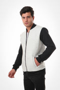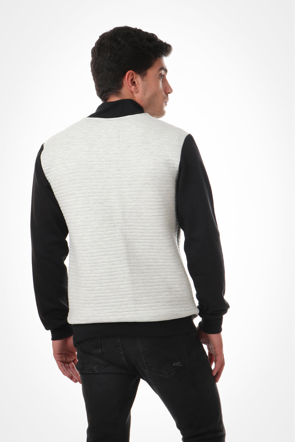 سويت شيرت رمادي بسحاب ونقشة ثنائية اللون