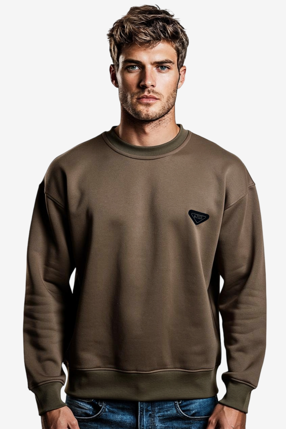 White Rabbit Men’s Cotton Piqué Sweatshirt with Mixed-Back Fabric – High-Quality Comfortable Everyday Wear – Brown