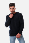 bbed Round Neck Acrylic Pullover -Navy