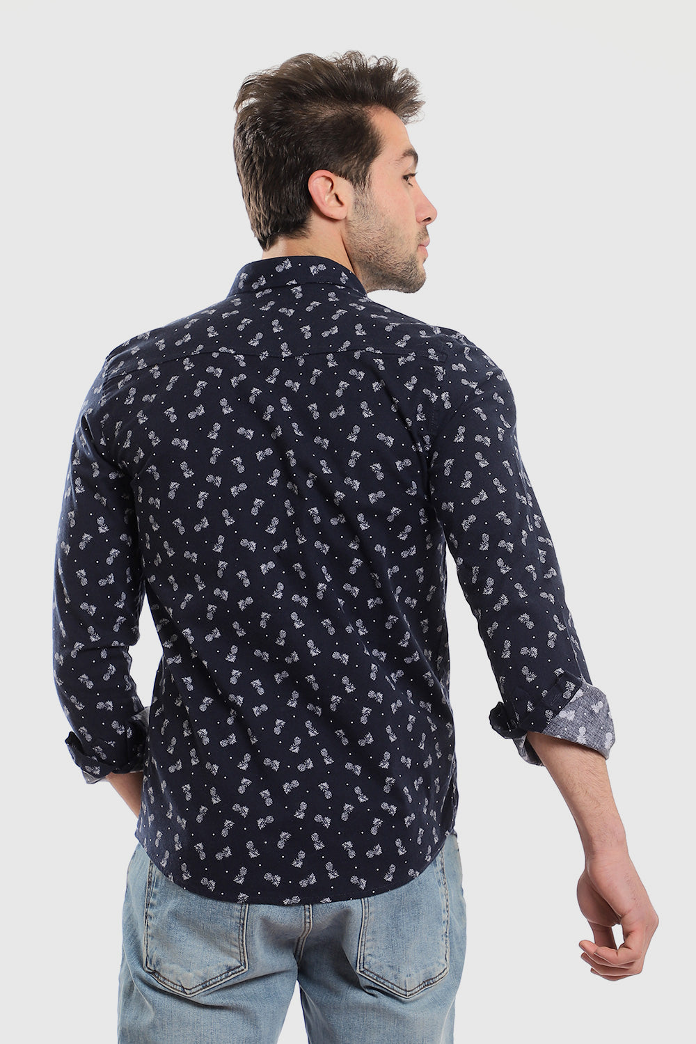Buttons Down Pineapple Long Sleeves Shirt - Navy Blue