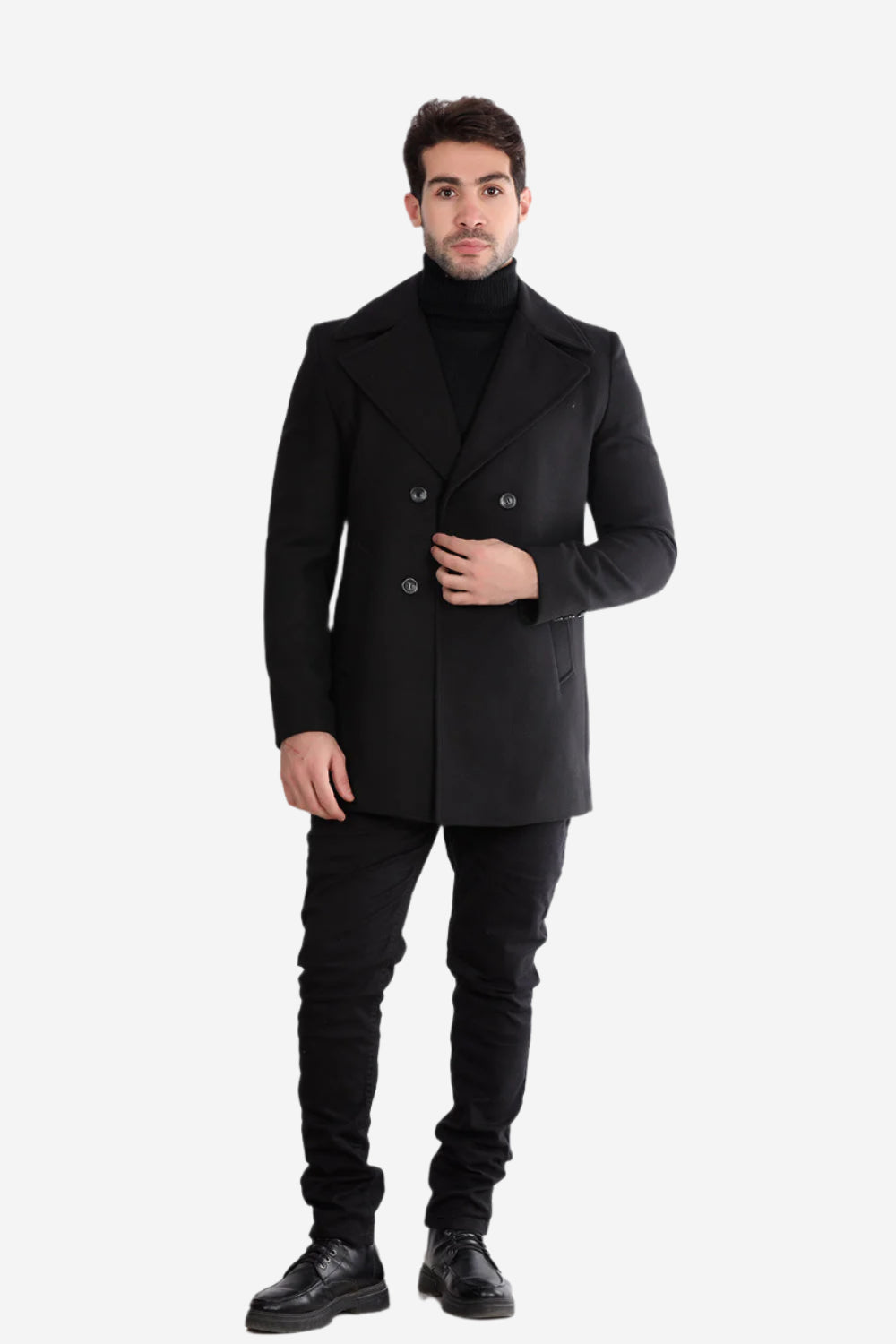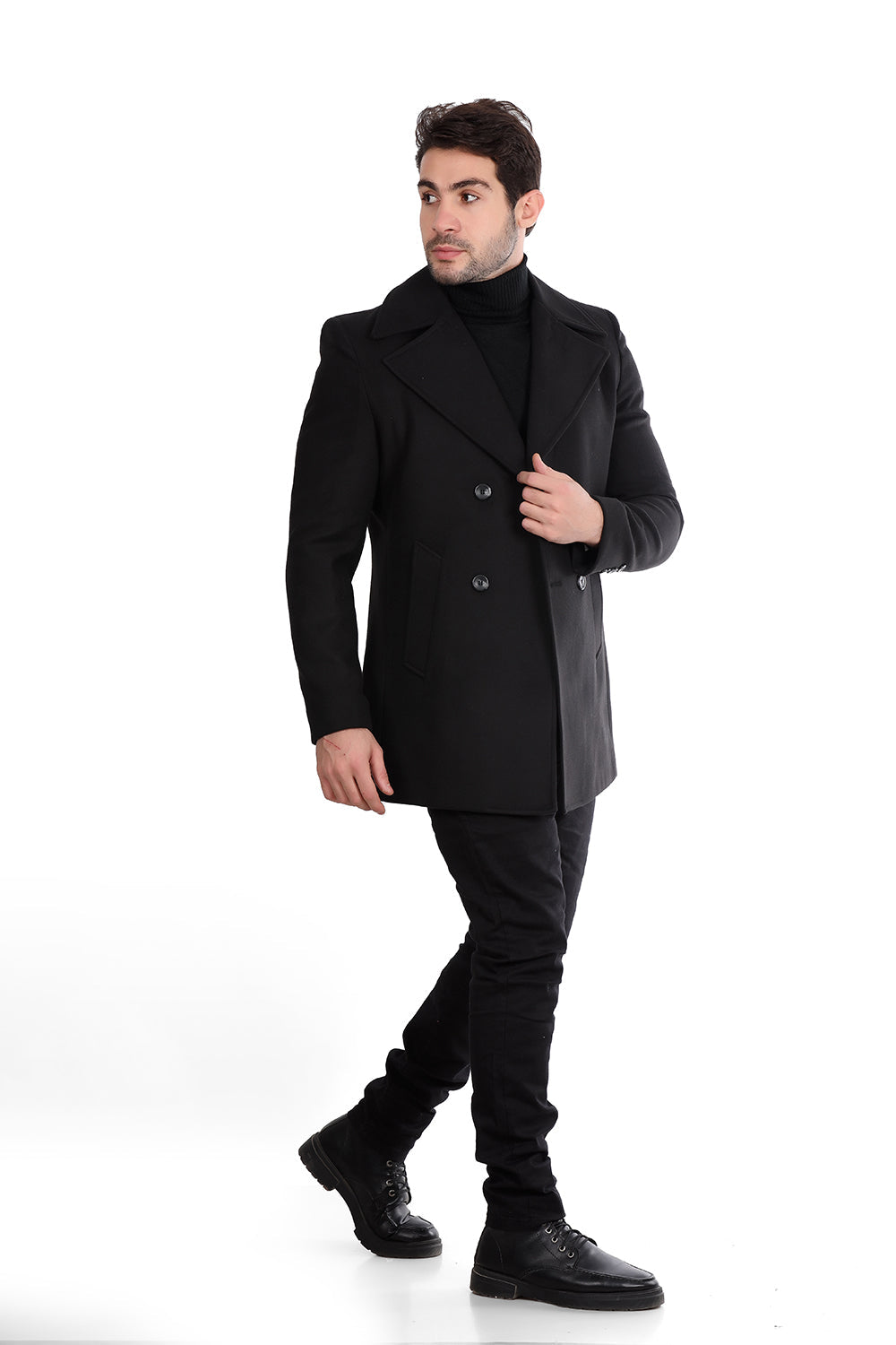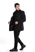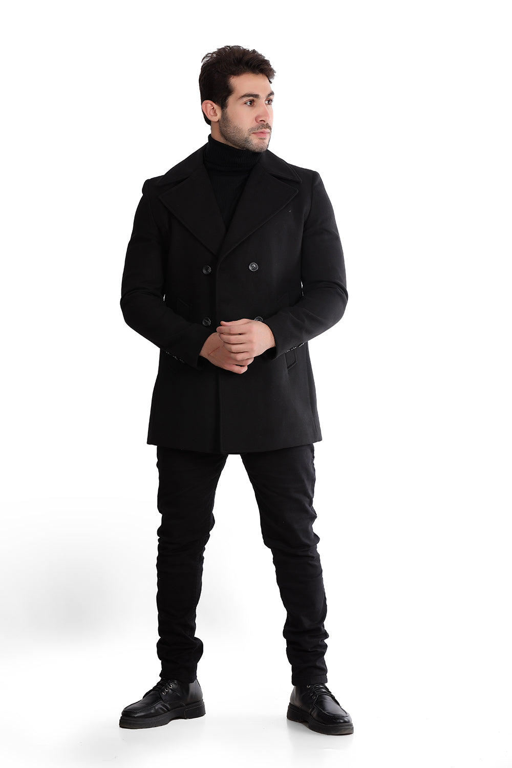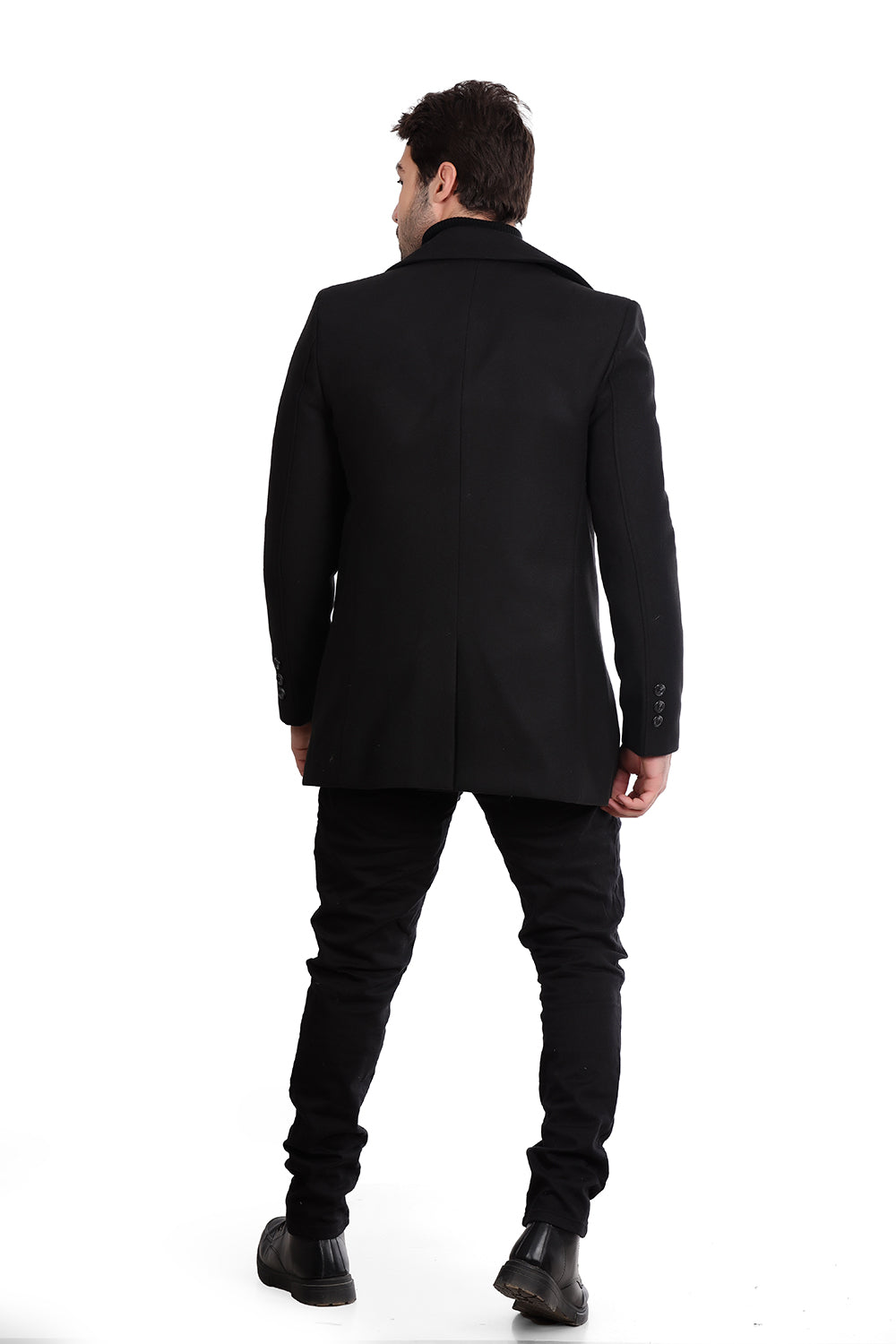 Classic Coat With Slanted Pockets Wool Coat-Black
