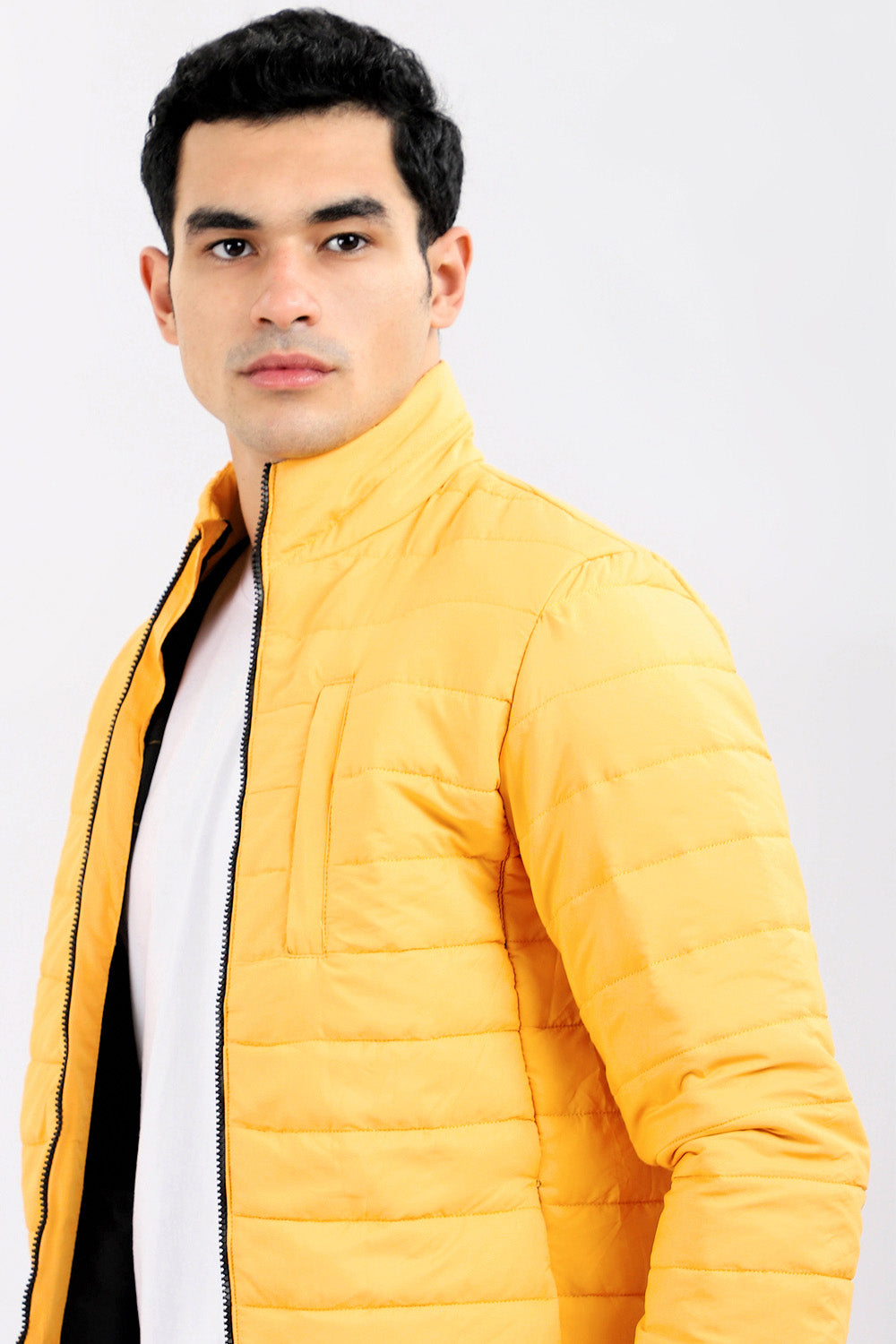 Stitched Pattern With Front Pocket Jacket - Yellow