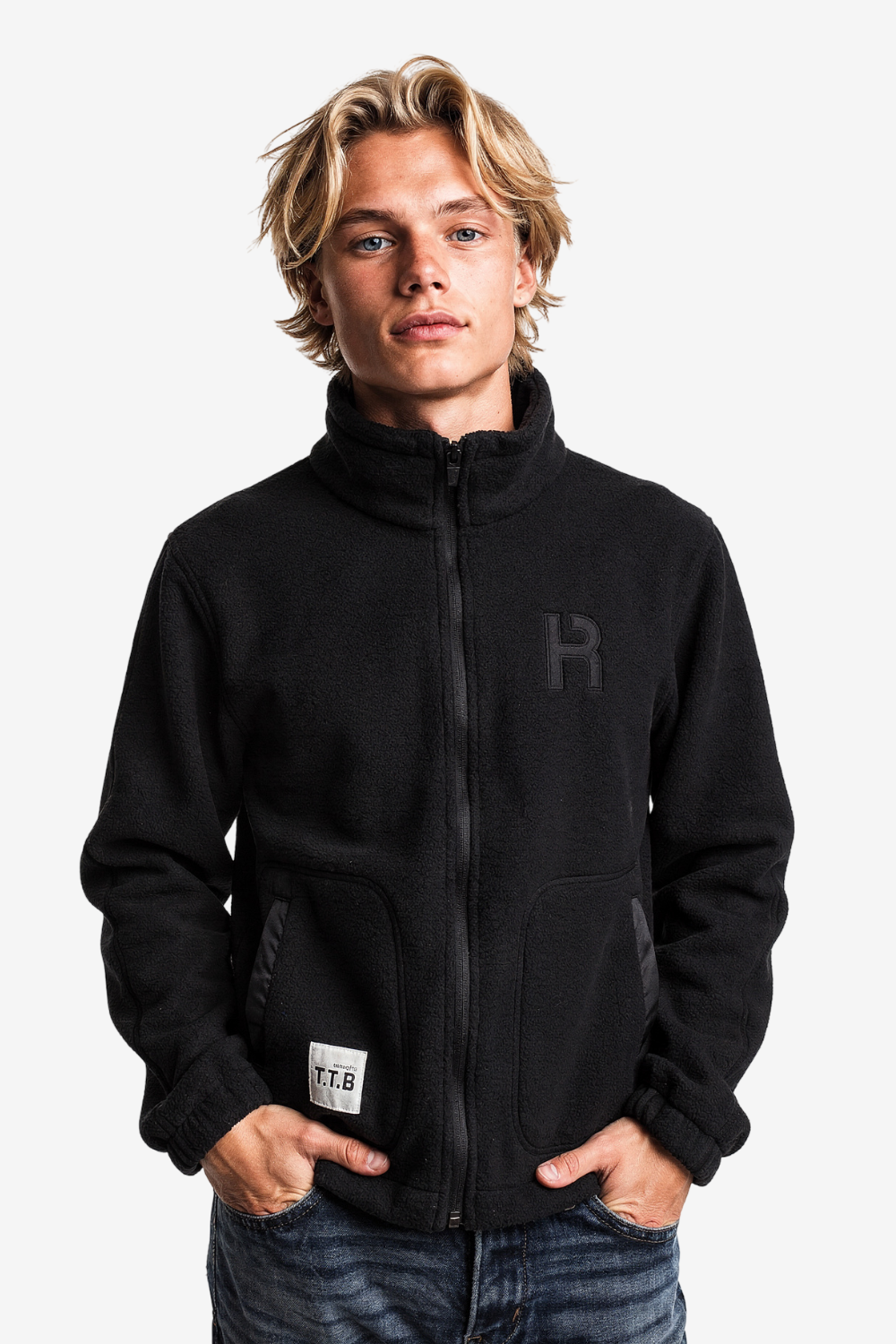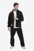 Ribbed Cuffs & Hem Quilted Hooded Jacket -Black