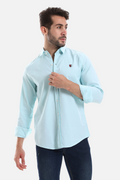 Front Buttoned Down Textured Men Shirt - Turquoise