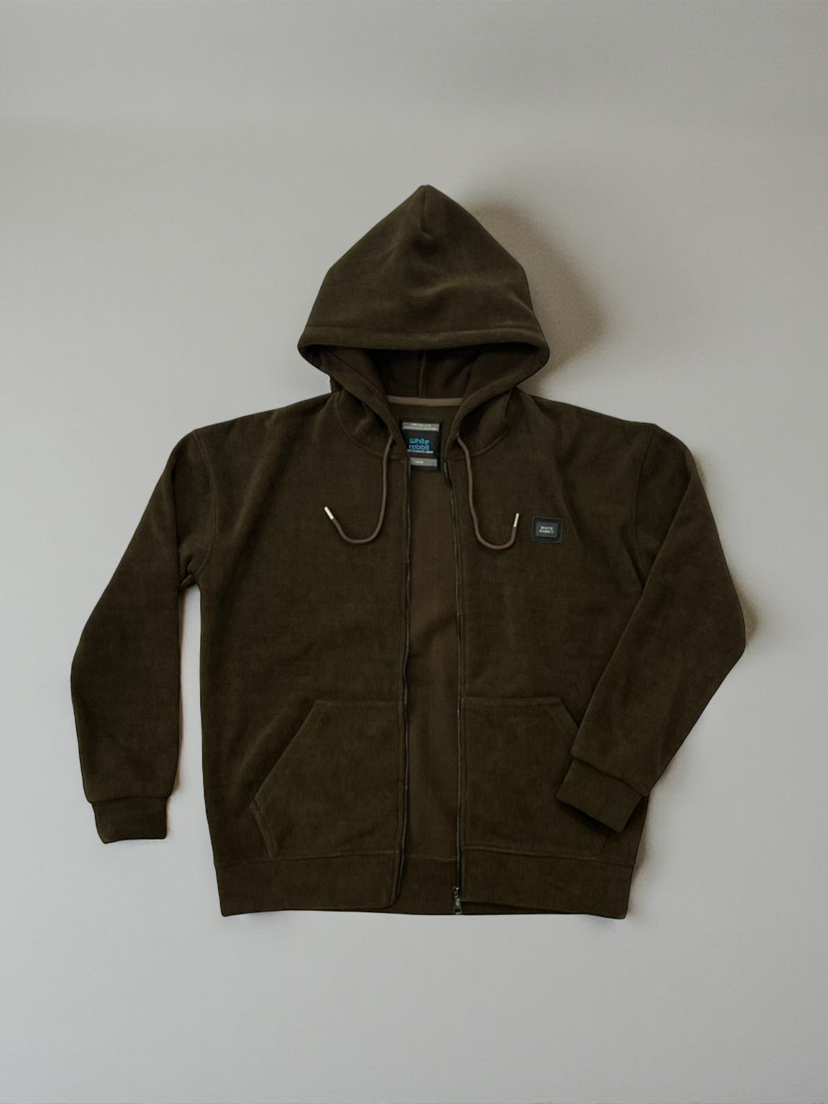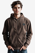 Basic Inner Fleece Zip Through Hoodie-Brown