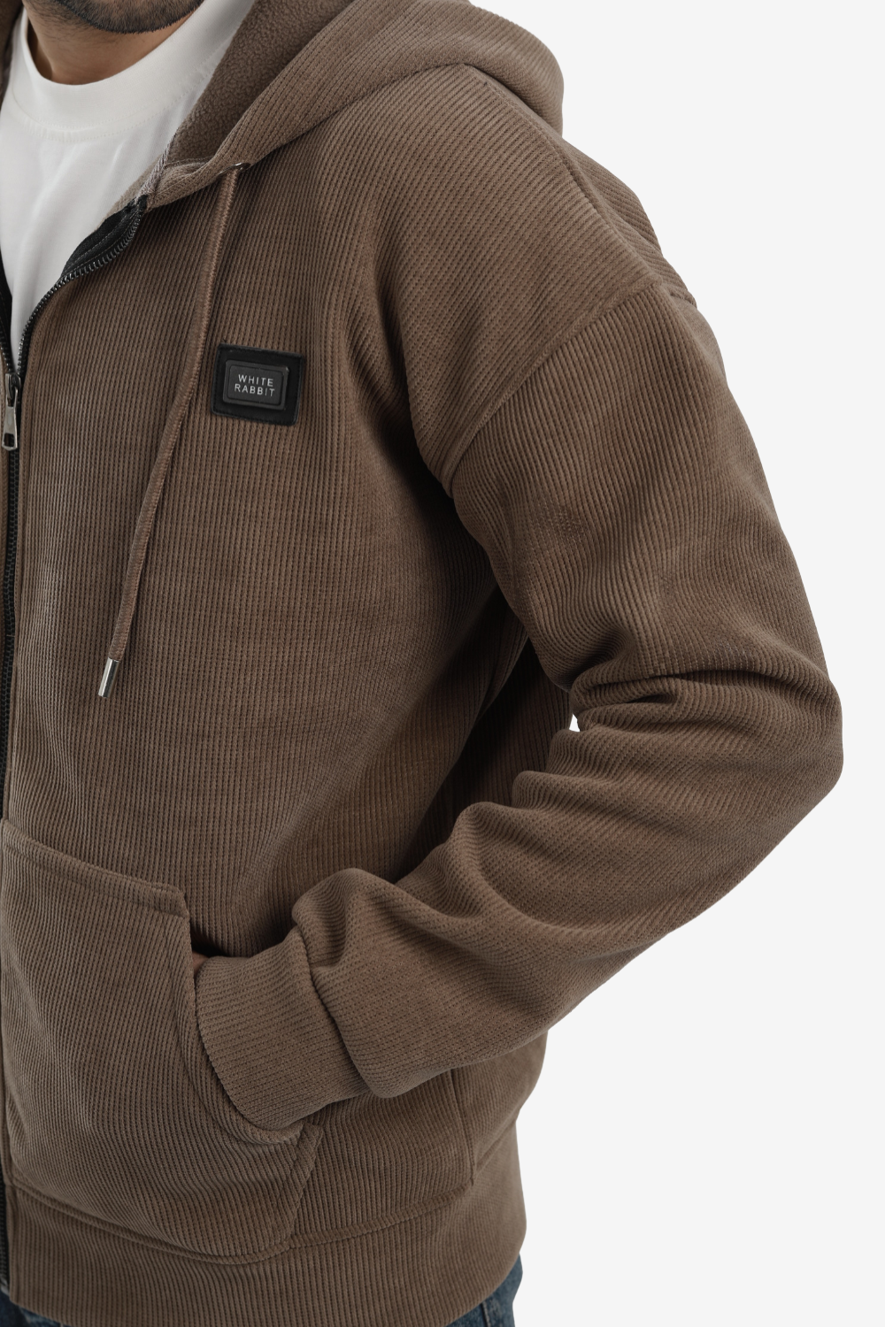 Basic Inner Fleece Zip Through Hoodie-Caffe